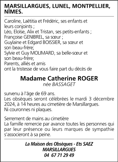 Décédée à « Localité inconnue »  (France) le jeudi 28 novembre 2024 à l'âge de 69 ans