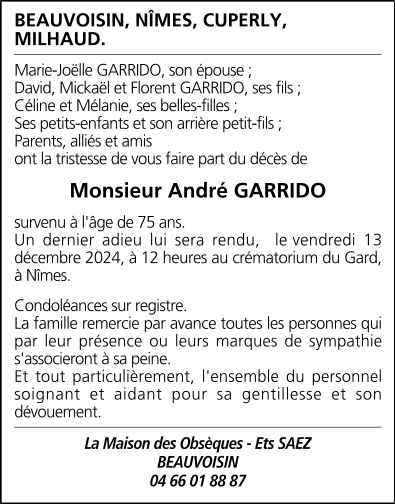 Décédé à Nîmes (30000, France) le dimanche 8 décembre 2024 à l'âge de 75 ans