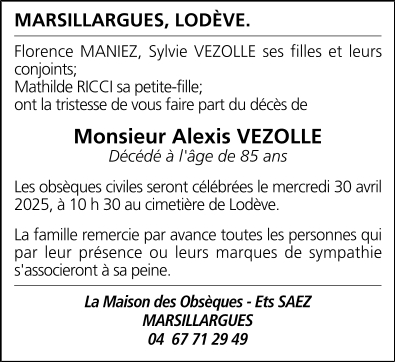 Décédé à Boisseron (34160, France) le jeudi 24 avril 2025 à l'âge de 85 ans